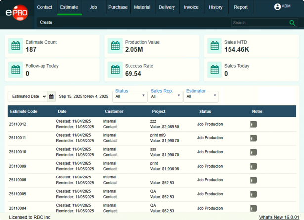 Whether processing digital, offset, large format, or outsourced print jobs, E Pro provides the precision and efficiency teams need to collaborate, win more work and improve margins.